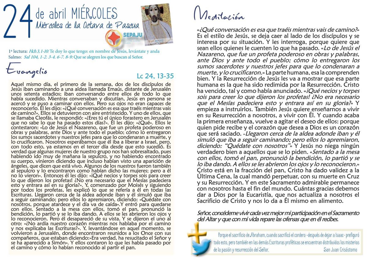 Este 24 de abril, coincide con la octava semana de Pascua. El pasado domingo 21 de abril, celebramos la Resurrección de Jesucristo. Y a semejanza de él, tú también vives.